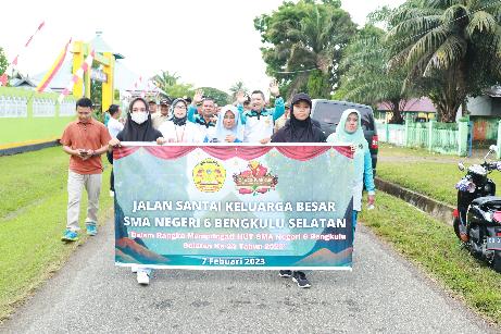 17 Februari 2023, SMA Negeri 6 Bengkulu Selatan melaksanakan jalan santai bersama dalam rangka acara penutupan Hari Ulang Tahun SMA Negeri 6 Bengkulu Selatan yang ke 24. Kegiatan jalan santai menjadi menyenangkan serta penuh suasana ceria dan bahagia bersamaan dengan cuaca yang cerah dan dengan semangat, hal ini terlihat saat melakukan perjalanan melewati rute yang sudah d tentukan oleh pan...